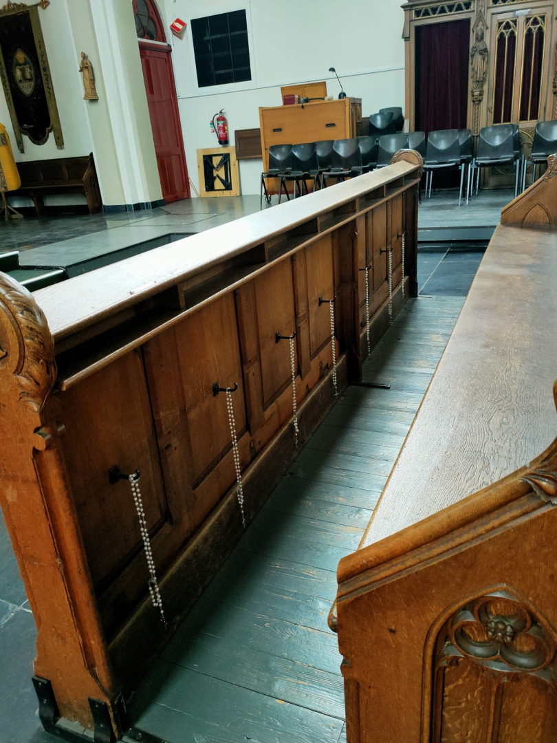 EEN KERK MET ROZENKRANSEN IN DE BANKEN