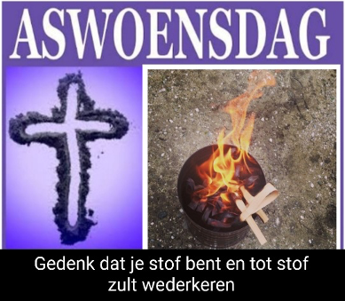 Aanstaande woensdag, op Aswoensdag 18 februari, kunt u een askruisje komen halen tijdens de Heilige Mis: