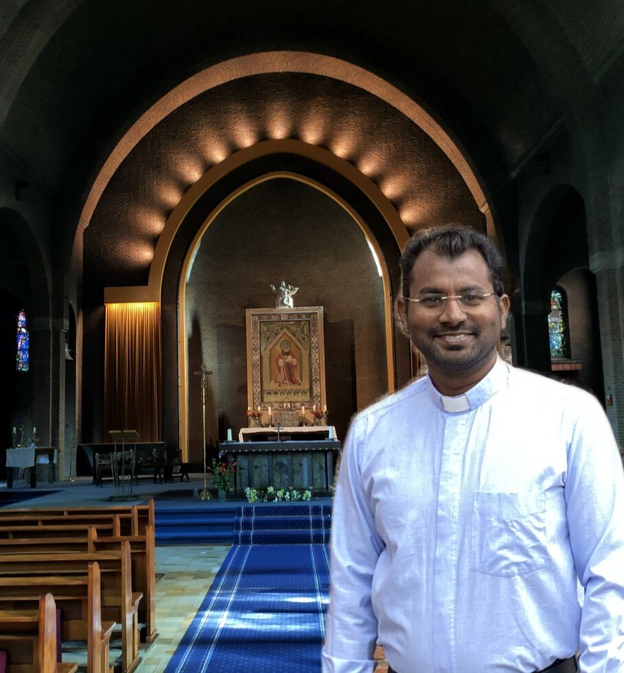 Na 13 jaar in het priesterambt in India te hebben gewerkt, werk ik hier in Nederland tussen de mensen met andere talen, andere culturen, een ander klimaat… waarom ik? Volgens mijn seminarierapport kwam ik in aanmerking voor hogere studies. Toen ik op zoek was naar een instelling in het buitenland om mijn studie voort te zetten, opende mijn bisschop mijn ogen voor een ander alternatief. Het bisdom van ’s-Hertogenbosch had contact met mijn bisdom Kottar. Mijn bisschop verzocht mij vervolgens om voor tien jaar als priester naar Nederland te worden uitgezonden. Ik waagde de sprong en kwam op 31 augustus 2022 in Nederland, waar ik (in Tilburg) de taal en de cultuur mij eigen ging maken. Op 1 december 2023 werd ik door bisschop De Korte benoemd tot kapelaan in de parochie van Sint-Jan de Doper, in Waalwijk. Daar ging ik wonen in de pastorie bij pastoor-deken Jos Verbraeken. Mijn aanstelling in Waalwijk zelf lijkt mij een beslissend plan van God met een reden, want ik vond in de pastorie van Waalwijk een beeld van Sint-Helena, de patroonheilige van mijn geboorteplaats. Dat kon geen toeval zijn. En mijn eerste parochie in India was die van de Wonderbare Moeder… en kijk waar ik nu terecht gekomen ben. Wonderbaarlijk!